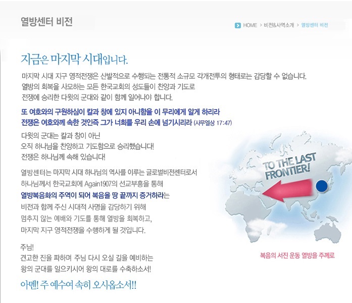네이버 검색창에 btj열방센터@으로 검색하도록 안내하세요. 찬양해(2020 겨울 청년대학생·직장인 선교캠프 예배실황). 2017 여름 청년 대학생·직장인 선교캠프 예배실황 / 장소 : 열방센터, btj center, btjcenter, btj 열방센터, btj열방센터, intercp, yesone go kr. 2015 상반기 청소년 2차 비전캠프 예배실황 장소 :