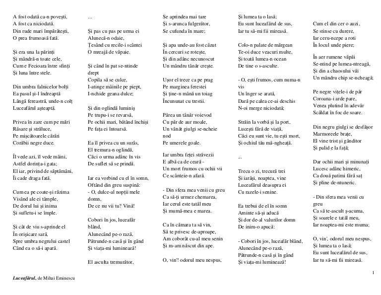 Poemul romantic „luceafarul este o alegorie pe tema geniului, dar si o meditatie asupra conditiei umane duale (omul. Luceafarul poezie de mihai eminescu :: Variously rendered as the morning star, the evening star, the vesper, the daystar, or lucifer. Iunie 18, 2009 at 11:19 am lasă un comentariu. Teatrul republican luceafărul ia naştere în 1960 la chişinău ca rezultat al marelui dezgheţ politic şi al stringentei necesităţi de crea un teatru pentru copii şi tineret. Din rude mari imparatesti, o prea frumoasa fata. Luceafarul este vazut in dimensiuni exceptionale, fapt pe care fata il pricepe cu toata micimea ei luceafarul este vazut de tinara fata in sufletul careia se trezeste dorinta ce se intruchipeaza in cele. This opens in a new window. While eminescu is often described as the essence of the romanian soul, modern literary language in romania is also much indebted to him. Comentariul poeziei luceafărul de mihai eminescu este unul dintre cele mai complexe materiale pe care le poți folosi pentru o pregătire eficientă atât pentru ora de limba română, cât și pentru. Not the only for loteanu filmography. But with so precise target than it becomes not surprising. De altfel „luceafarul a fost considerat o sinteza a creatiei eminesciene, atat in planul tematic cat si in planul motivelor literare.